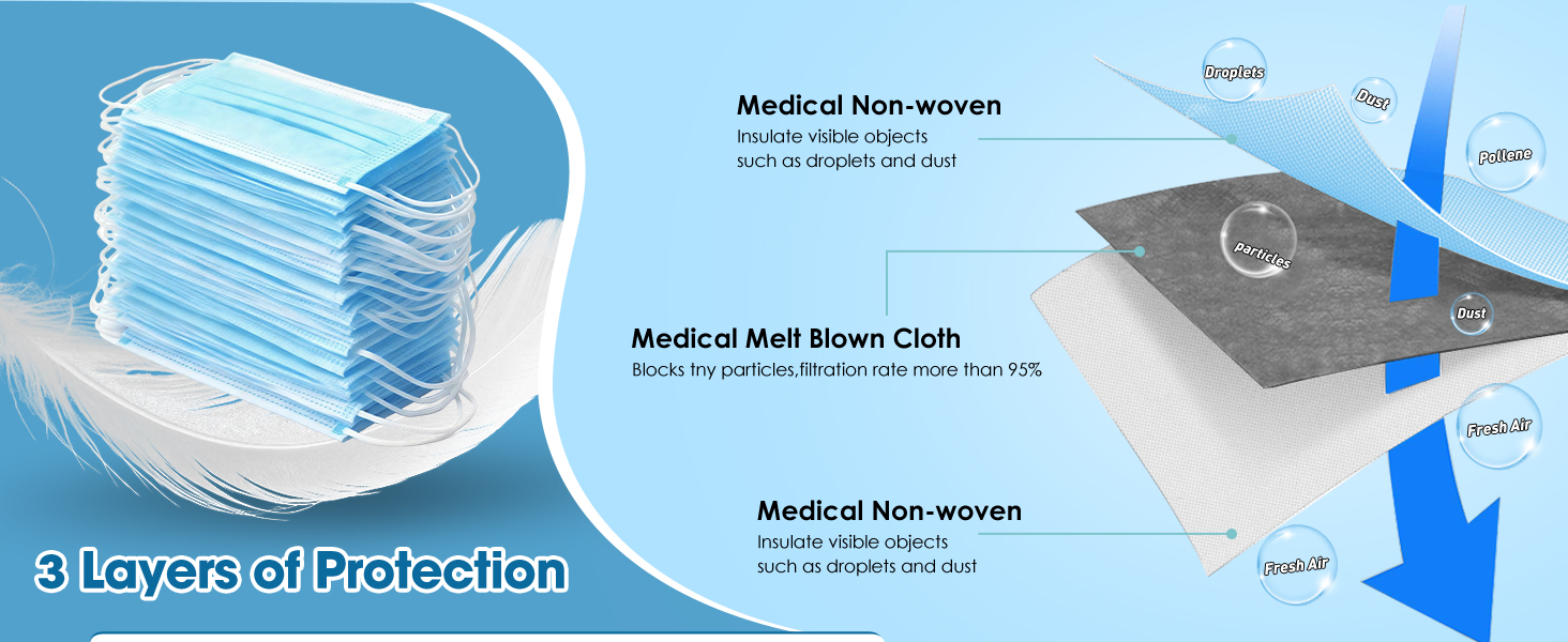 The 3-ply blue disposable face masks,made of two layers of non-woven fabric and one layer of melt-blown fabric.
