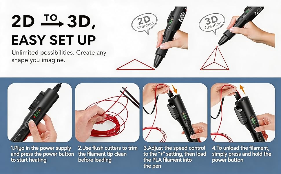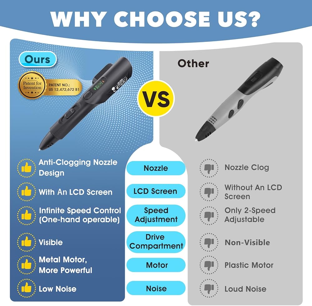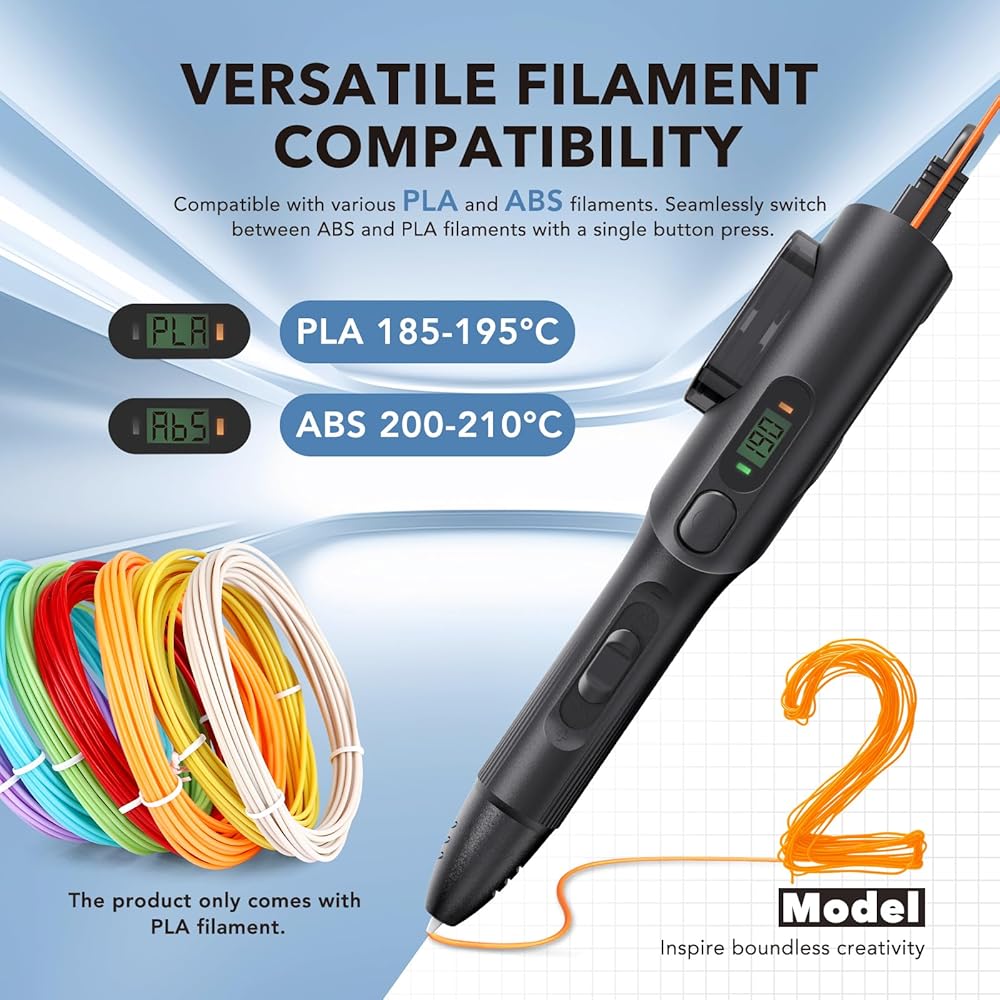【Durable Ceramic Nozzle & PLA / ABS Compatibility】This professional 3D printing pen features a durable ceramic nozzle designed to resist clogging and ensure smooth, consistent filament flow. Compatible with 1.75mm PLA and ABS