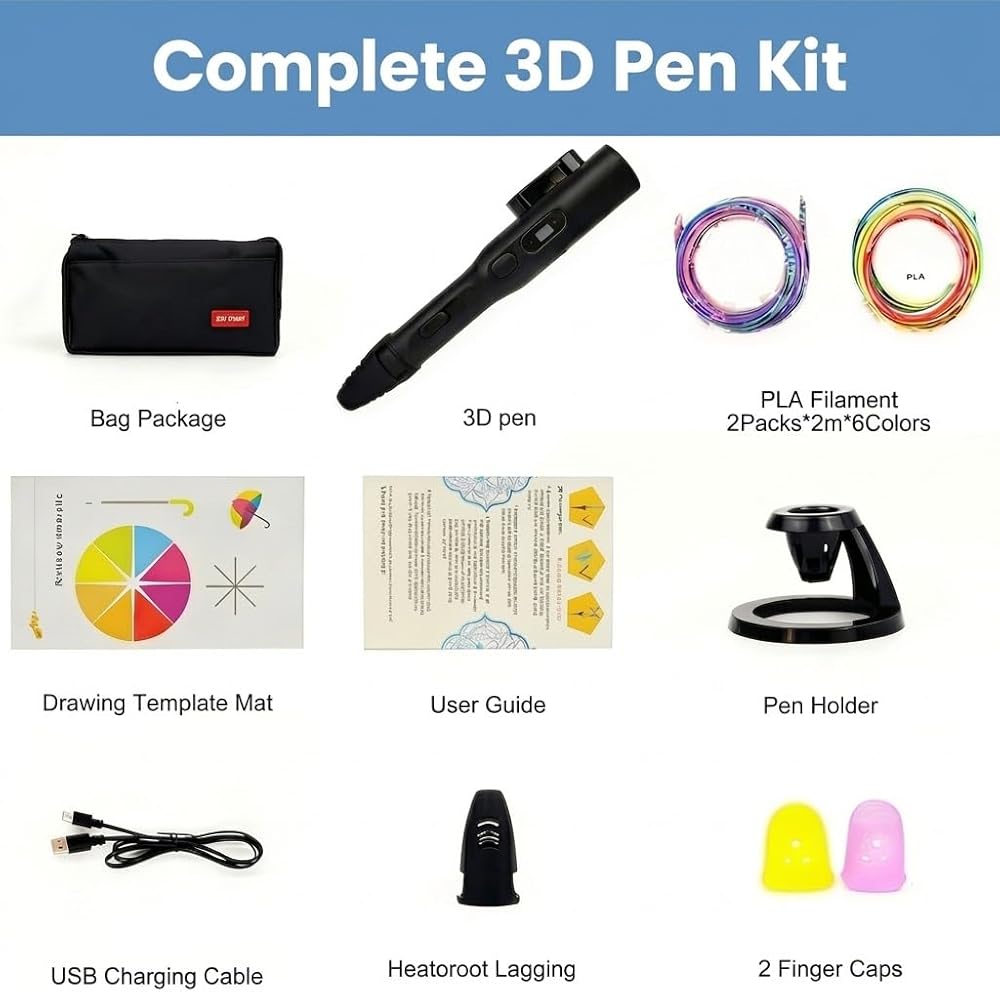 【Complete All-in-One 3D Pen Kit】This giftable 3D pen set includes 12-color filament refills (80 ft total), reusable stencils, pen stand, finger guards, heat-resistant sleeves, and a storage bag. A practical 3D craft kit and creative hobby kit for cool stuff, unique gifts, and hands-on creative projects