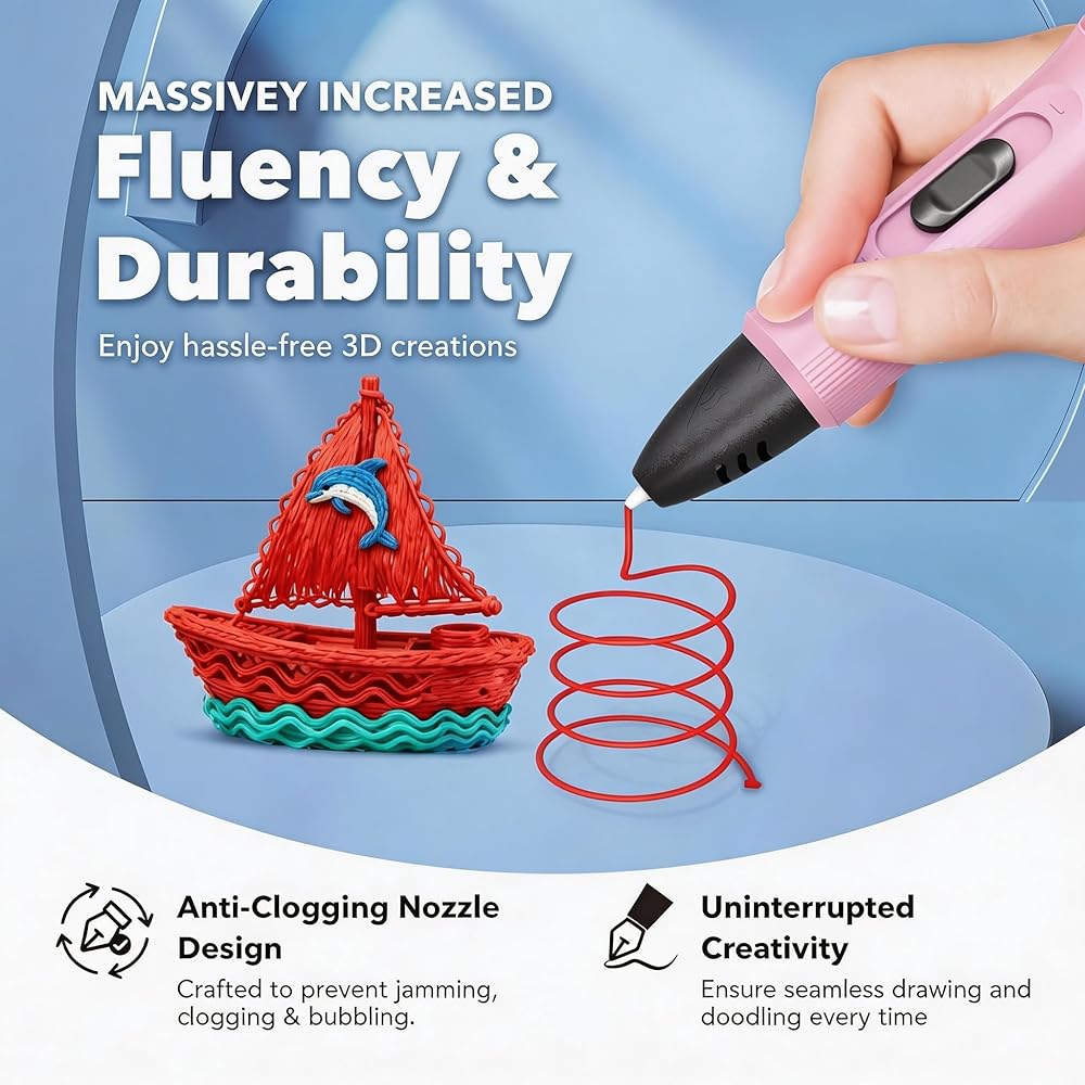 • 【Durable Ceramic Nozzle & PLA / ABS Compatibility】This professional 3D printing pen features a durable ceramic nozzle designed to resist clogging and ensure smooth, consistent filament flow. Compatible with 1.75mm PLA and ABS