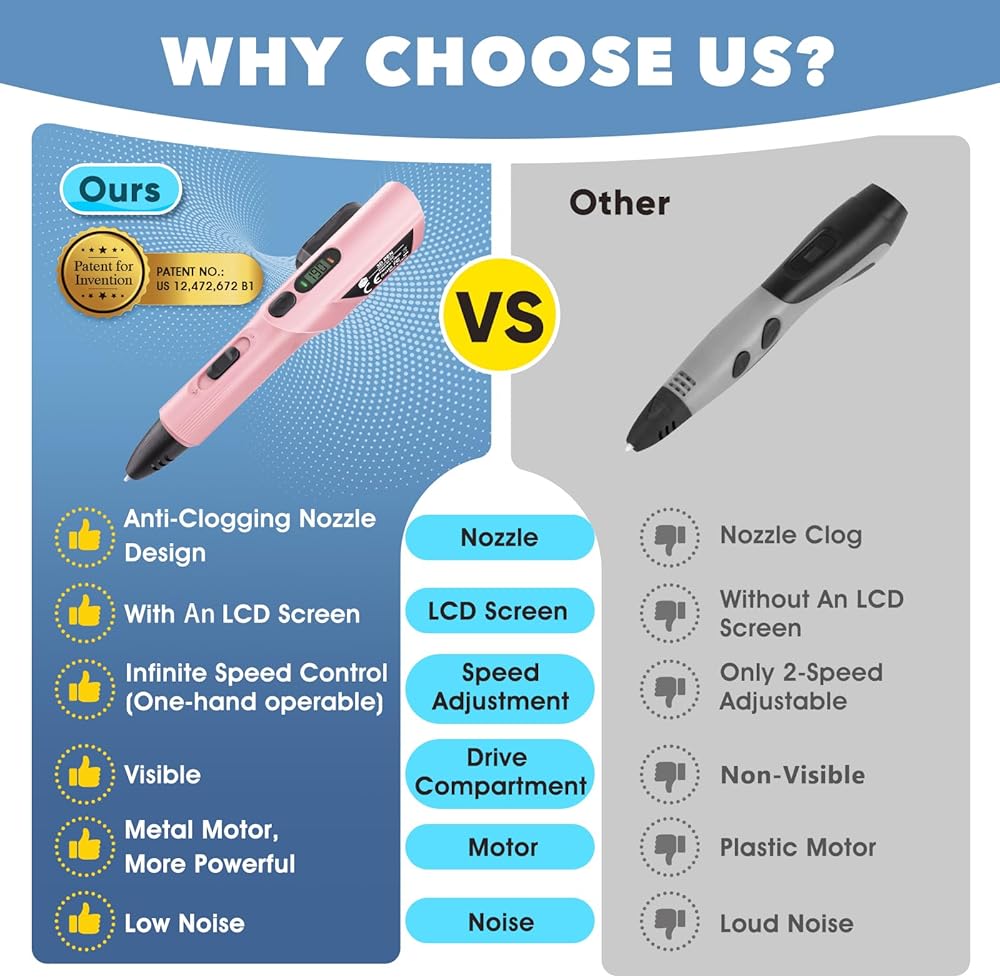 • 【LCD Screen & Dual Preset Temperatures】The clear LCD monitor shows real-time data of temperature and filament. Designed with preset heat levels for PLA and ABS, the 3D pen supports quick switching and meets all your 3D drawing needs