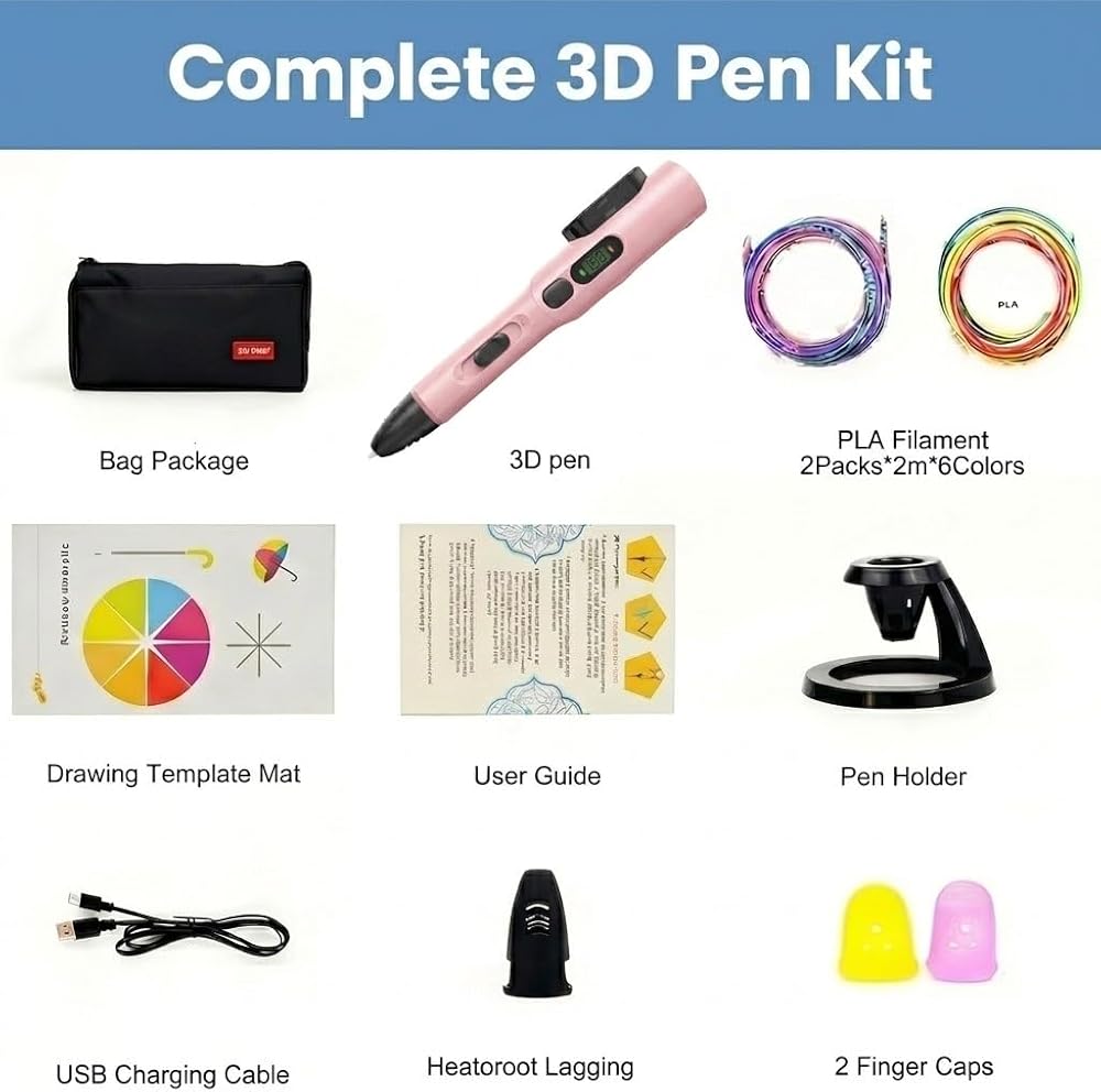 • 【Complete All-in-One 3D Pen Kit】This giftable 3D pen set includes 12-color filament refills (80 ft total), reusable stencils, pen stand, finger guards, heat-resistant sleeves, and a storage bag. A practical 3D craft kit and creative hobby kit for cool stuff, unique gifts, and hands-on creative projects
