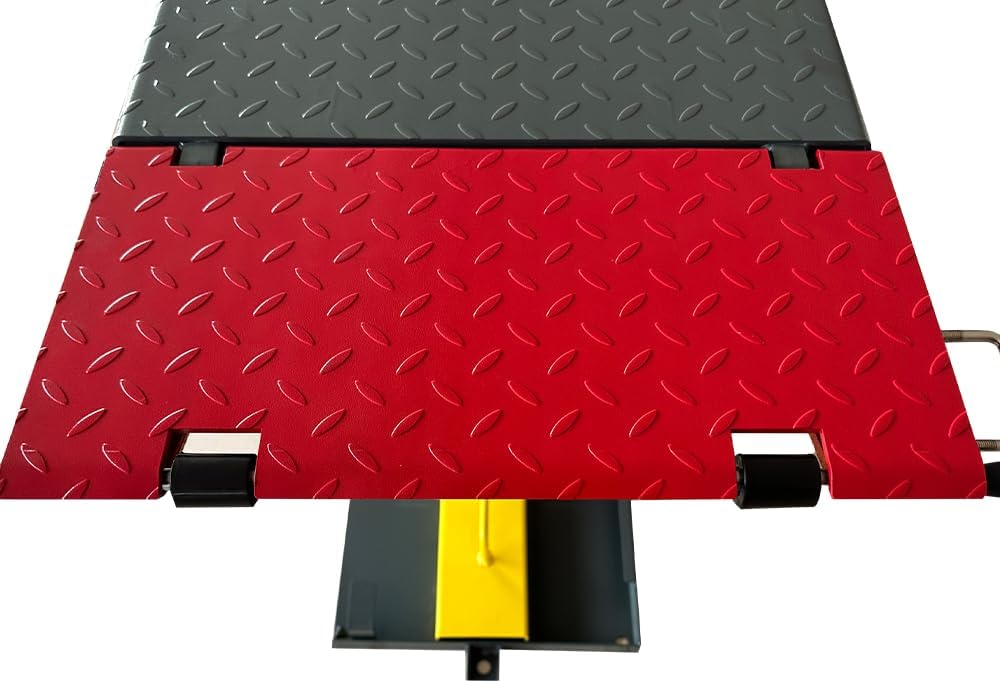 Extended Platform with Ramps: Features lockable drive-up ramps that extend the platform, ideal for servicing long vehicles easily and securely.