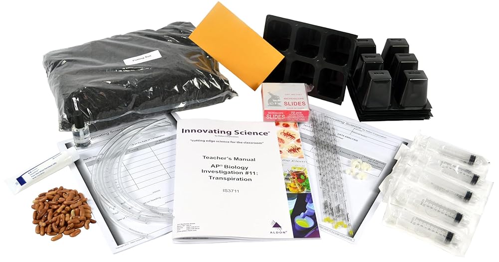 Students will study the process of transpiration/transpiration pull and the role it plays in water/nutrient movement in plants. They will study the role of stomata in relation to the transpiration process using a potometer to examine the rate of transpiration in a bean seedling under a select set of environmental conditions. They will also examine the location/density of stomata from a leaf surface by preparing a stomatal peel. Lastly students will design and conduct an experiment to show how altering an environmental condition may affect the rate of transpiration. Meets AP Science Practices 1, 2, 4, 6, and 7, and Big Idea 4. Materials provided for 32 students in 8 lab groups. Kit Includes: 8 pc Clear tubing, 12? 8 Tubing clamps 8 Pipettes, 1ml 8 Dispensers, 10ml 8 Planting trays, 6 cell 1 bag Potting soil 1 pkg Bean seeds 1 tube Petroleum jelly 1 btl Nail polish 1 pkg Microscope slides Materials Needed but not Supplied: Calculators Microscopes Distilled or deionized water Clear cellophane tape Razor blades or scalpels Laboratory stands w/clamps Light source Large shallow trays/containers Miscellaneous plant leaves Optional: Exact materials required will vary depending on design of student experiments. Some common item may include: Fan Large plastic bags Thermometers Spray bottles DOT: Small quantity exemption 173.4 THIS PACKAGE CONFORMS TO 49 CFR 173.4 for domestic highway or rail transport only
