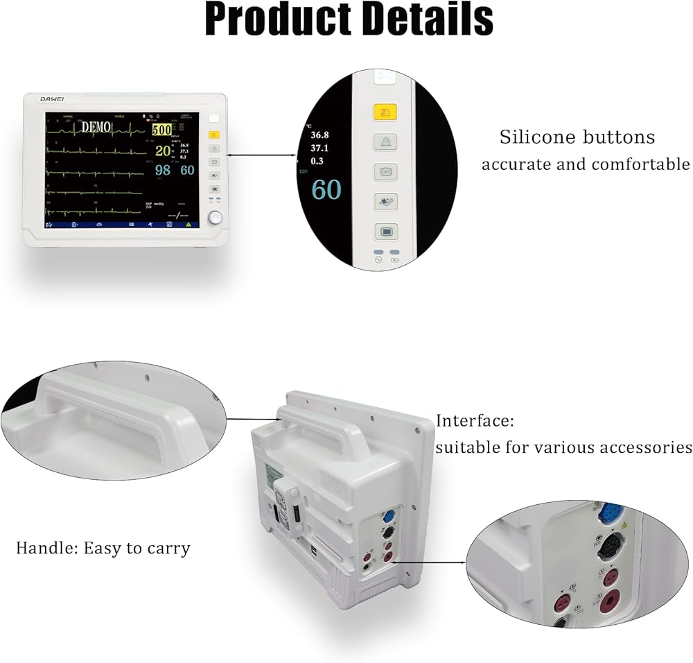 Animal-dedicated accessories improve usability, including veterinary ECG clips, tongue-type SpO2 sensors, multiple cuff sizes for blood pressure measurement, and temperature probes. The optimized system ensures stable operation and reliable data display, making it a practical and cost-effective solution for veterinary professionals.