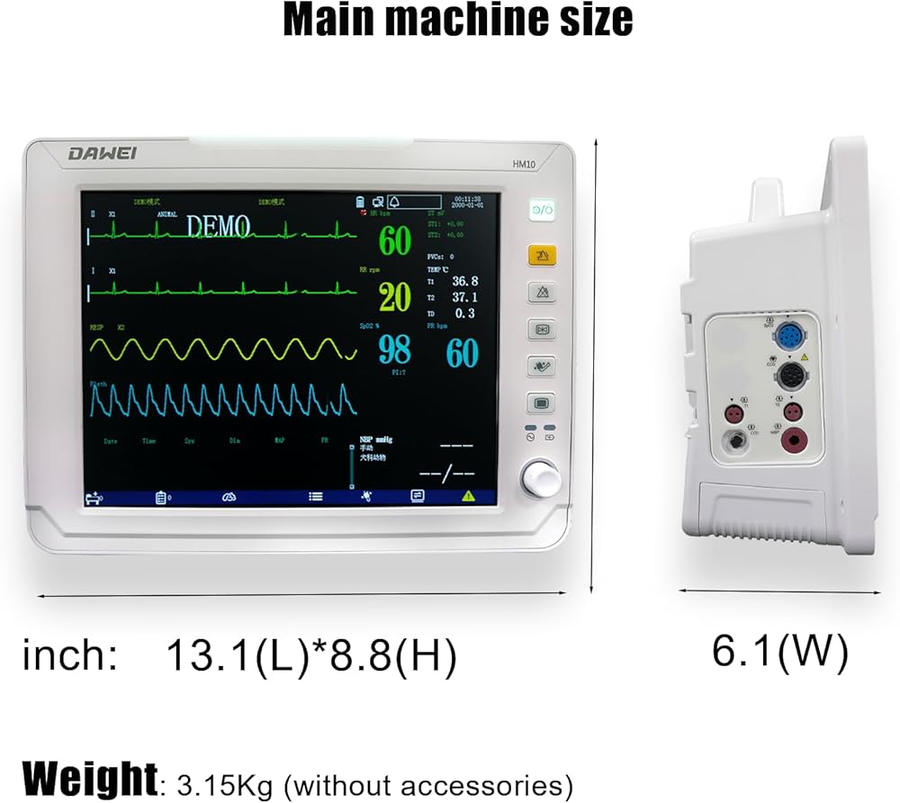 The HM10 Veterinary Vital Signs Monitor is designed exclusively for animal use and provides dependable performance for veterinary clinics, animal care centers, and research facilities. It supports essential monitoring functions including ECG, SpO2, non-invasive blood pressure, respiration, heart rate, and temperature, with algorithms tailored specifically for animals. The clear 12.1-inch display allows easy viewing during examinations and procedures.