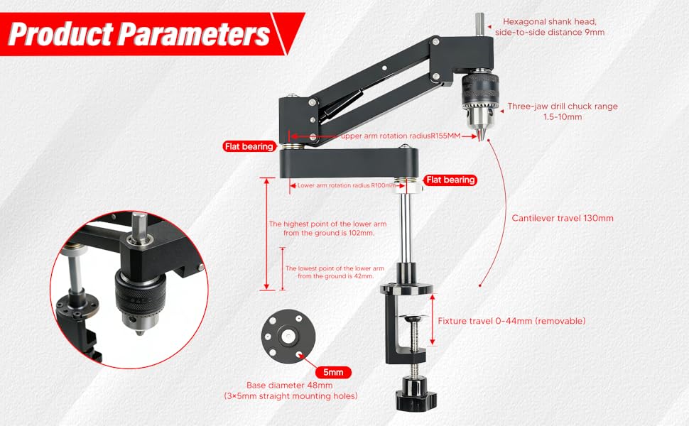 - 【Precision】Three jaw chuck securely clamps workpieces with a diameter range of 1.5-10mm, ensuring stable and accurate tapping results