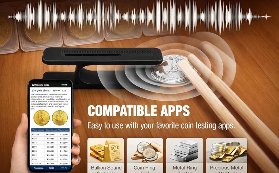 App-Compatible for Detailed Analysis: This tester works with a variety of general coin analysis apps that detect sound frequency and resonance data, helping you evaluate your coins more precisely.