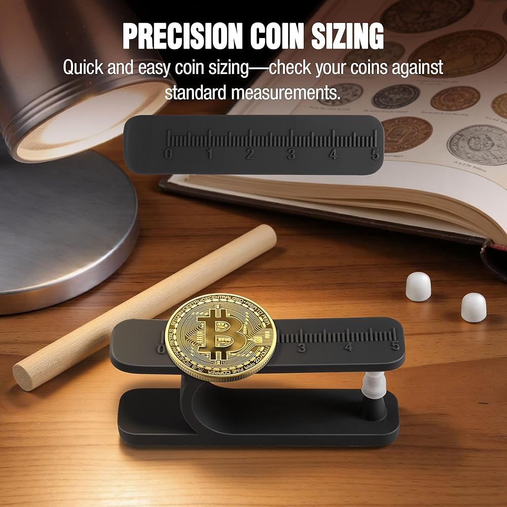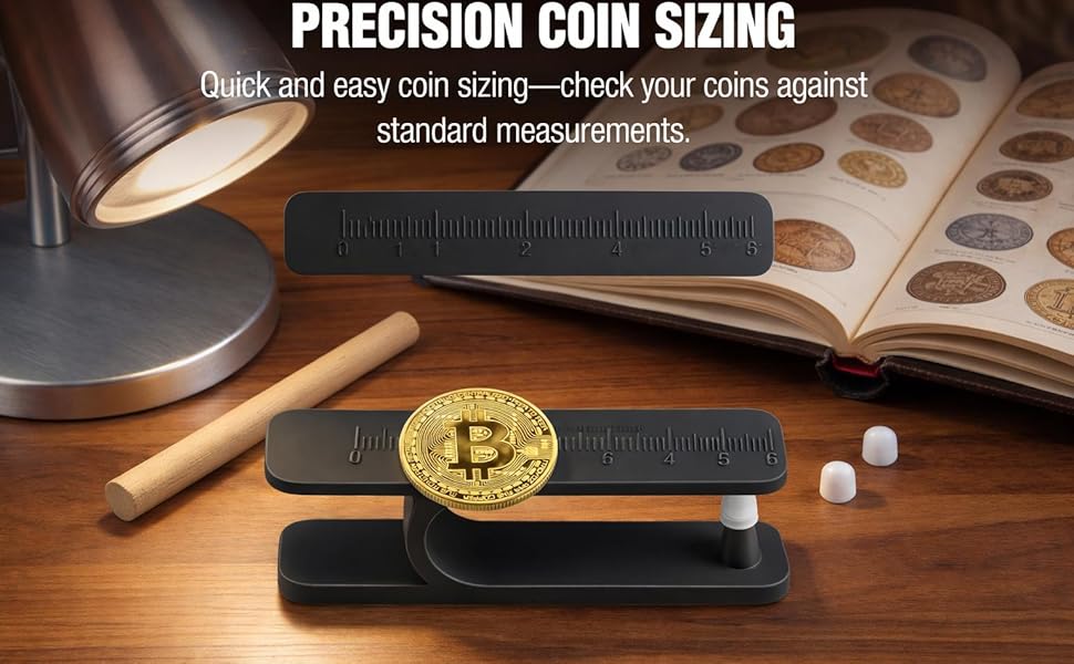 Premium, Coin-Safe Materials: Built with a soft, food-grade silicone cap, the tester securely holds your coin without scratching or damaging the surface. The included wooden tapping stick ensures a consistent and gentle tap for accurate sound testing every time. You can also use the built-in diameter gauge to compare coin sizes and further verify authenticity.