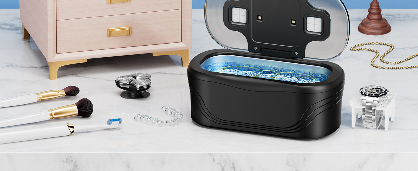 【BUILT-IN UV LIGHT】 Go beyond cleaning with integrated UV light technology. This dedicated cycle targets and clean up to 99.9% of common dirt and germs on items like retainers and earrings. It adds a crucial layer of hygiene to your daily routine, ensuring your most personal items are truly refreshed and sanitized.
