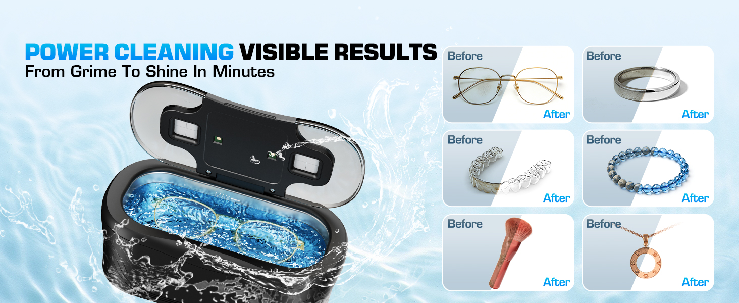 【PRO-GRADE 48KHZ ULTRASONIC POWER】 Our cleaner harnesses intense 48,000Hz ultrasonic waves, the optimal frequency for daily use. These powerful waves generate millions of micro-bubbles that penetrate the tiniest crevices of your watch bands, ring settings, and eyeglass hinges, blasting away oils, grime, and dust that hand-wiping leaves behind. It's deep cleaning redefined.