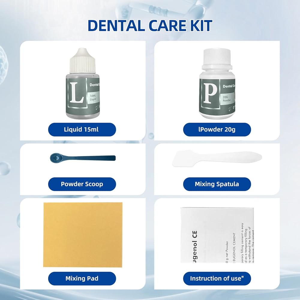 Tooth Repair Kit, Zinc Oxide Eugenol Cement for Cavities Filling, Dental Care Kit for Broken, Chipped or Missing Teeth, Temporary and Permanent Tooth Filling and Crown Fixing at Home