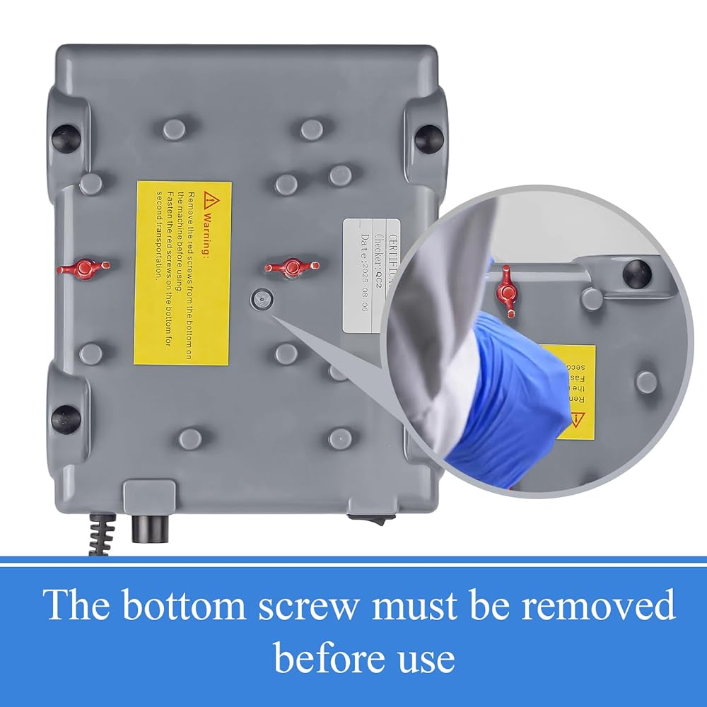 Before use, it is important to remove the fixing screws on the bottom plate used for shock-absorbing during transportation (the screw heads must be painted red before starting the machine)