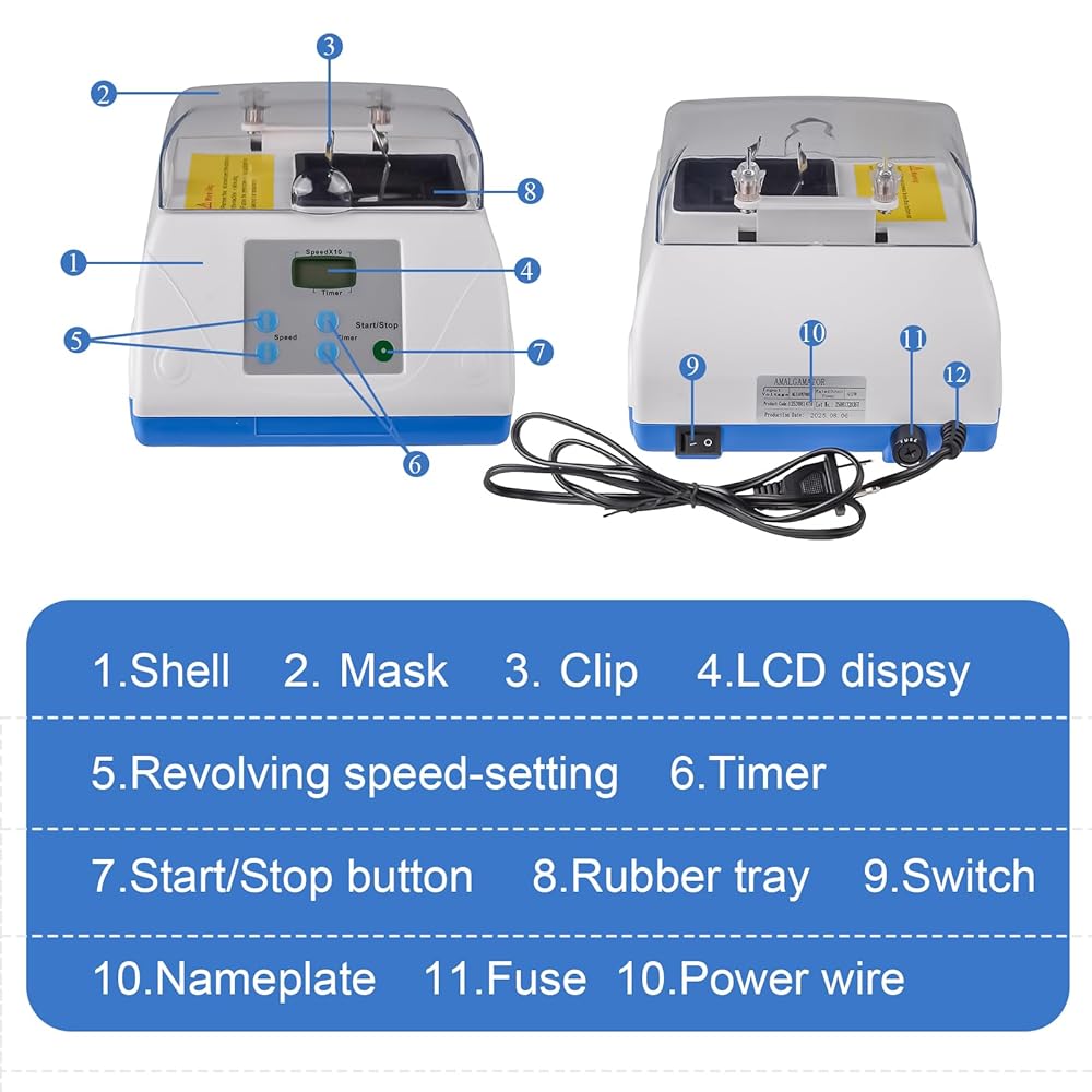 • Precision Mixing: 8-shaped trajectory + electric vibration system ensures uniform blending of amalgam/glass ionomer, delivering top-tier repair quality