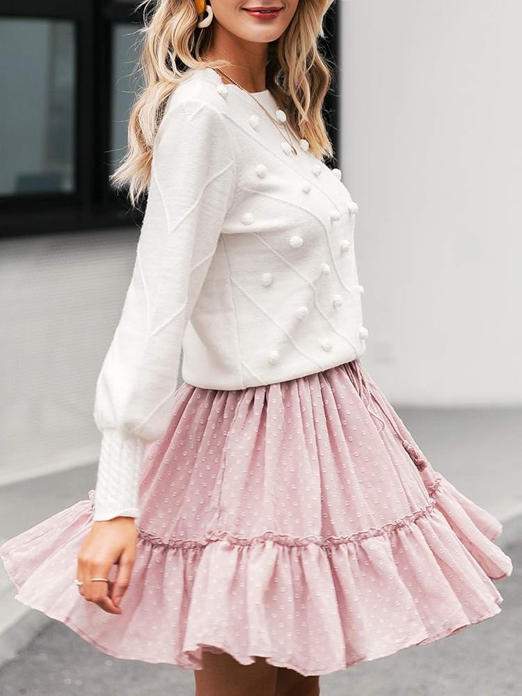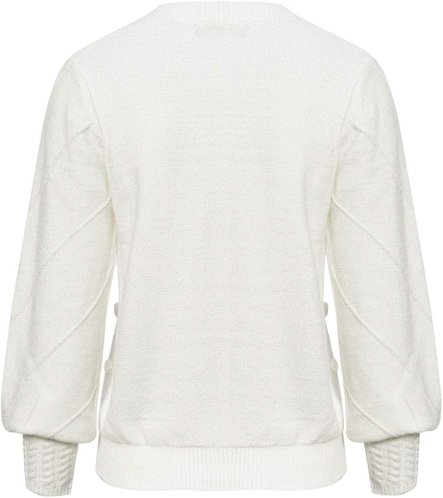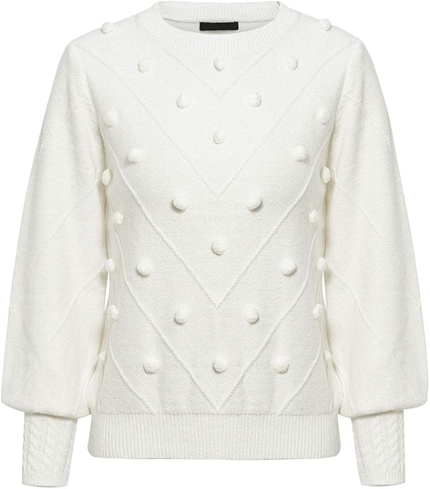 ❃ Features: White sweater pullover, classic crewneck design, lantern sleeve, cute of knit pompon, this soft warm sweater features trendy lovely, and perfect for female students