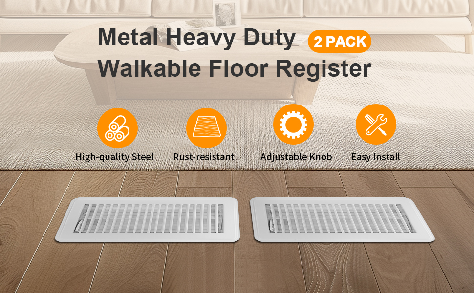𝗕𝘂𝗶𝗹𝘁 𝘁𝗼 𝗟𝗮𝘀𝘁: Manufactured from top-grade materials of this metal floor register, Heavy duty steel walkable vent cover without sharp edges; Register vent cover with robust powder-coated finish