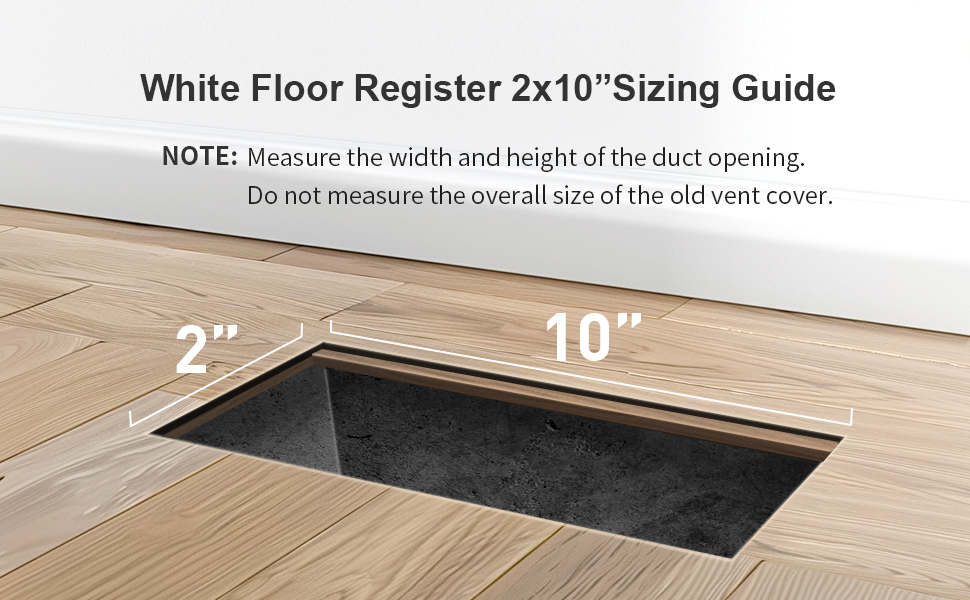 𝗙𝗹𝗼𝗼𝗿 𝗩𝗲𝗻𝘁 𝗖𝗼𝘃𝗲𝗿𝘀 𝟮 𝘅 𝟭𝟬: Get 2 pack vent covers for your home floor. The size of the floor vent register is 2” by 10” (measuring the duct opening size); the outer dimensions of the register grilles are 11.47 " (Length) x 3.73" (Width)