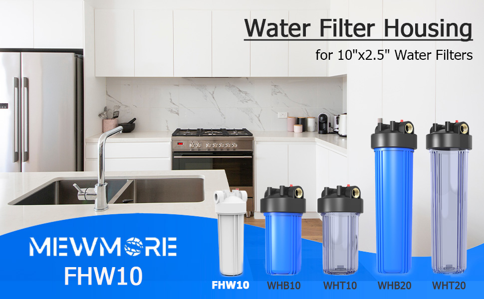 Compatible Cartridges: The MewMore FHW10 water filter housing blue fits for all universal standard 2.5” x 10” filters cartridges.