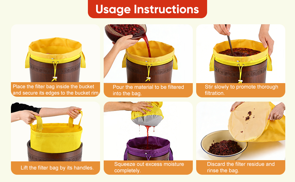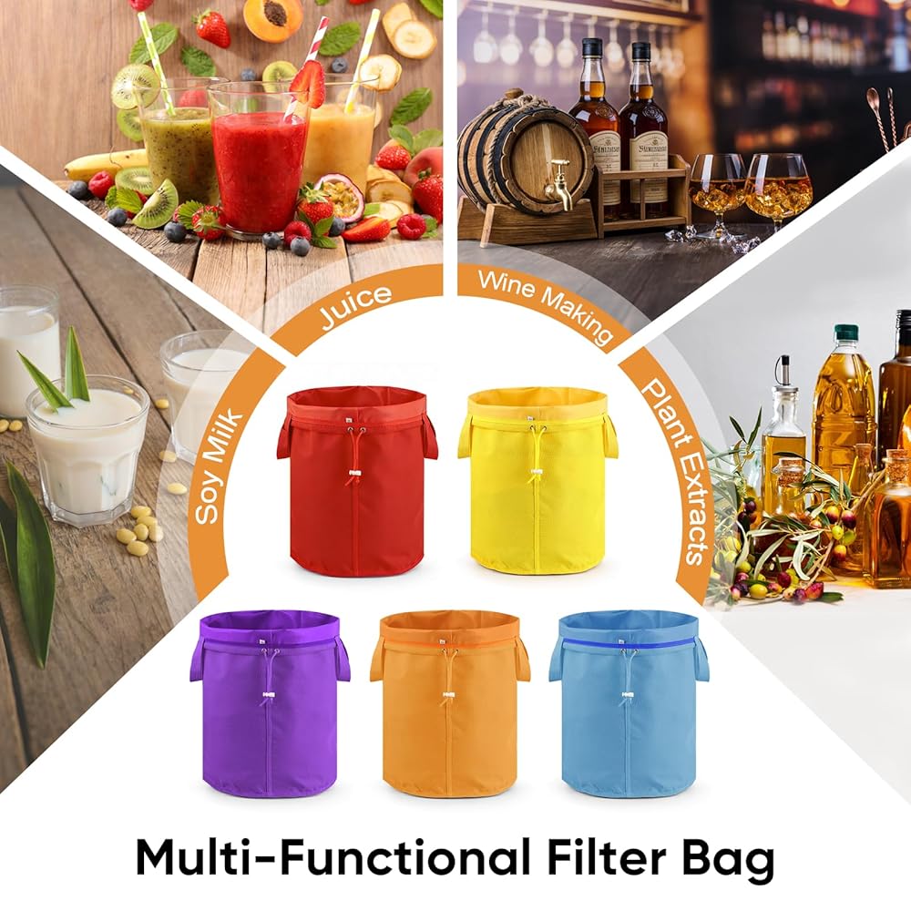 Upgraded Handle Design:Our all-mesh strainer bags now feature two additional handles for easy movement during use. The bag opening includes an adjustable drawstring to customize the size of the opening, allowing you to effortlessly lift the bag for pressing