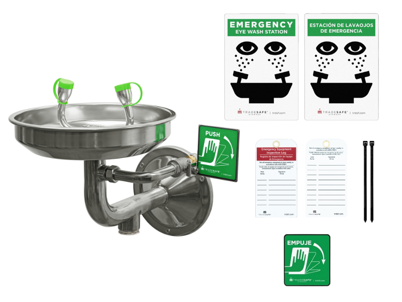 Unmatched Safety Communication - Includes highly reflective aluminum eye wash signs in English and Spanish for ultimate visibility that commands attention, and ultra-durable bilingual inspection tags and ties for efficient communication and accurate record-keeping