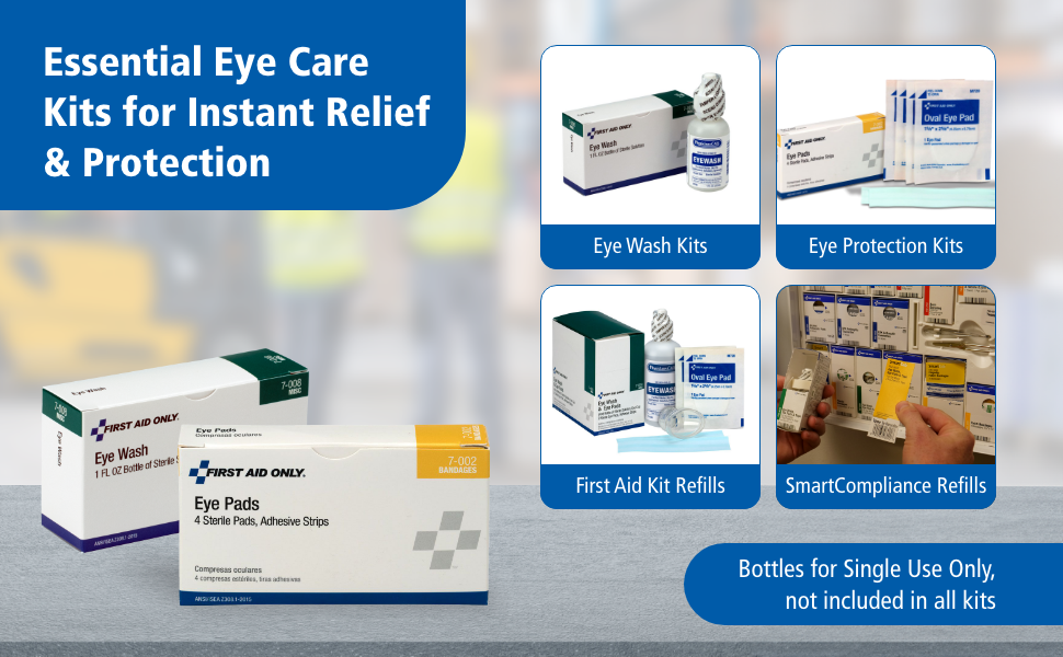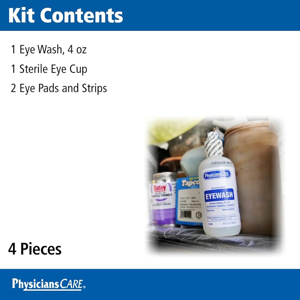 All-In-One Emergency Eye Wash Kit: Stay prepared with our 6-piece kit that includes 4 oz. of eye wash solution, 2 non-stick gauze pads, 2 adhesive strips, and an eye cup for eye wash for immediate eye relief and protection; Bottle is for single use only