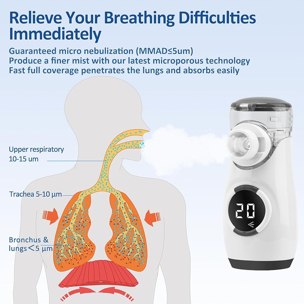 RECHARGEABLE TECHNOLOGY ►Built in 1200mAh lithium battery, worry free use.The Kit comes with a mist Unit,Two sizes of masks,a mouthpiece,a 60-inch USB-C cable,a quick guide,and instructions.