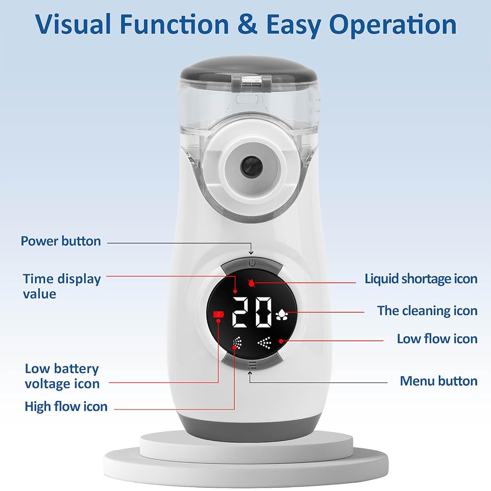 LED VISUAL OPERATION ►Intuitive Visual LED display screen operation,Our user-friendly LED screen makes operation and monitoring effortless.The nebulizer noise is less than 25dB during working,which is whisper quiet so that babies can sleep well,also will not disturb others when you work or at home.