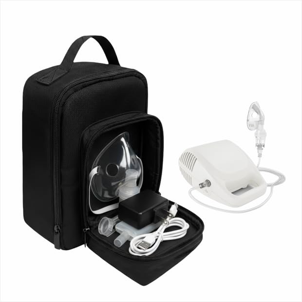 Portable Device Carrying Case Travel Organizer, Multi-Purpose Storage Bag with Adjustable Divider, Water-Resistant 600D Fabric, Compatible with Nebulizer Accessories, 7" x 4" x 12"