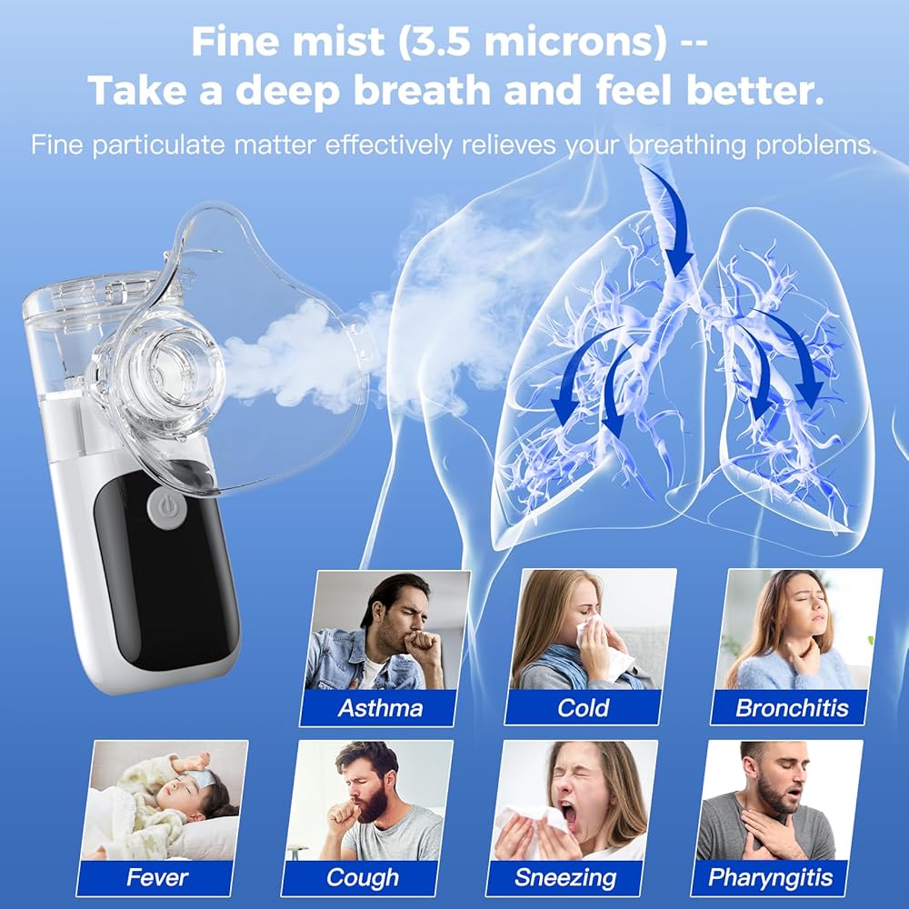 Ultra-Fine Mist for Better Absorption: Equipped with advanced mesh Humidifier technology, this handheld Humidifier generates micro-mist particles as small as ≤5μm, ensuring deep and efficient inhalation. The gentle yet powerful mist delivers fast relief for both adults and kids, making it an ideal respiratory care device for the whole family.