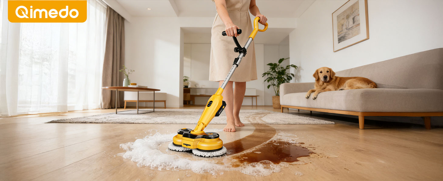 qimedo 6000mAh Battery Cordless Electric Mop M3 Pro, 800RPM Electric Power Scrubber & Mops for Floor Cleaning, Automatic Spin Mops with Smart Display,Rotating Mop with LED Light & Water Spray
