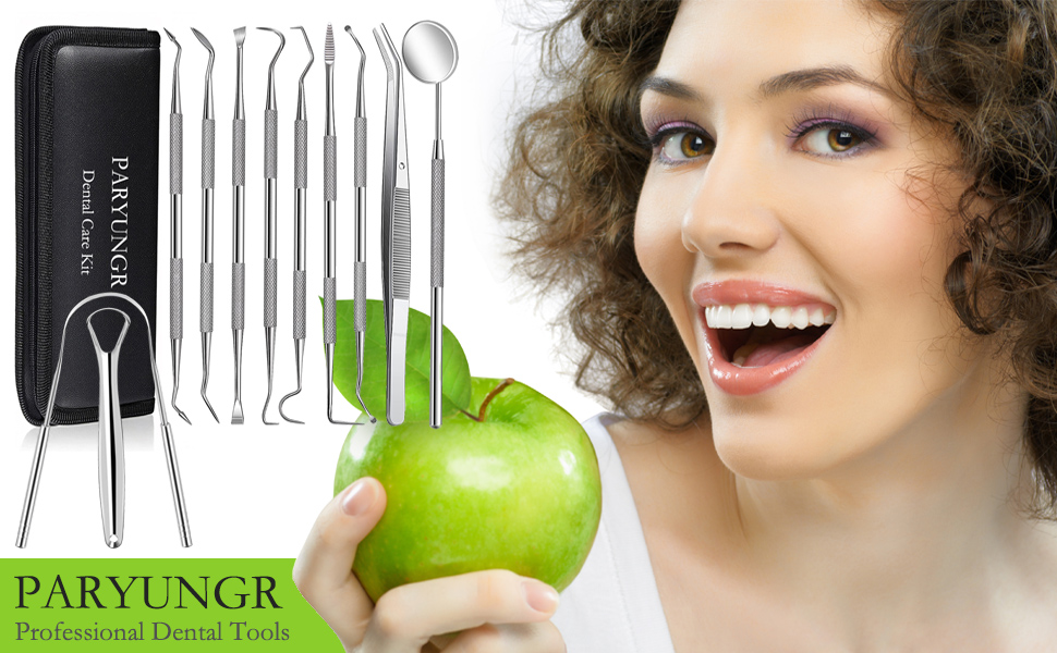 ✅11 PCS ORAL CARE KIT: 11 Pcs dental tools kit, dental floss picks, mouth mirror, toothpick, tartar scraper, dental tweezers, sickle scaler, plaque remover, tongue cleaner. designed with different angles and shapes, it can effectively remove stubborn tartar between teeth and gums, meeting your daily household needs.