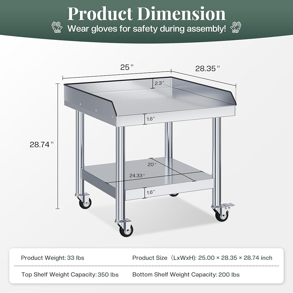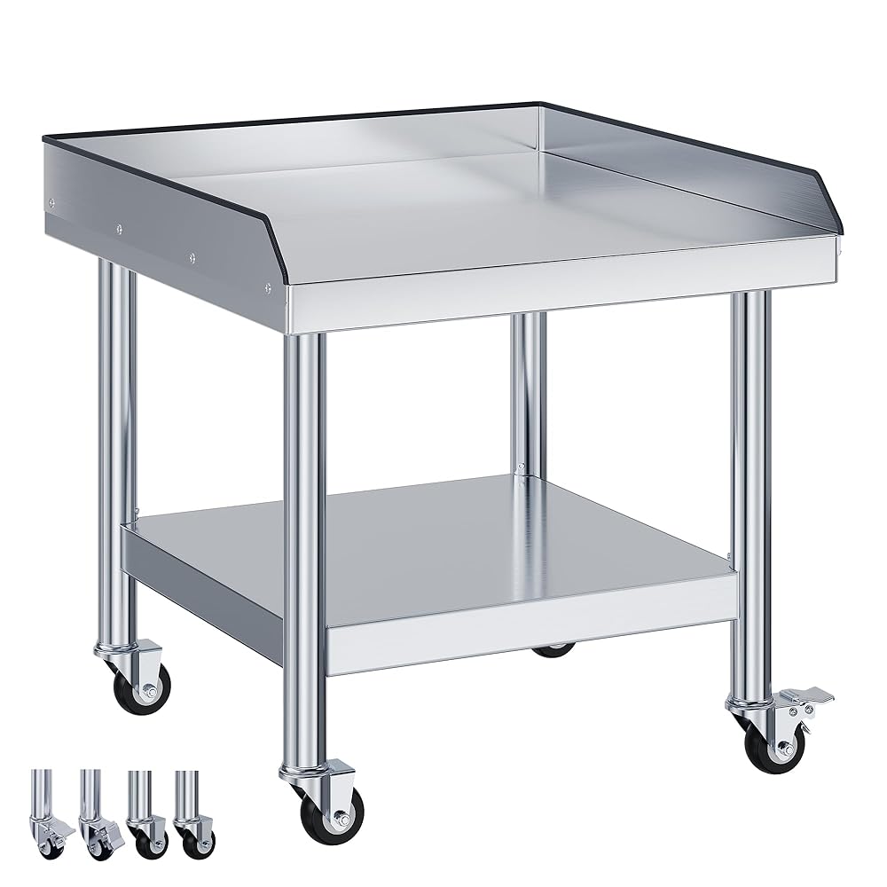 Jocisland 25"x28" Stainless Steel Equipment Stand & Equipment Grill Stand Table, NSF Certified with Adjustable Undershelf, Wheels and Edge Baffle for Commercial Kitchen, Restaurant & Home