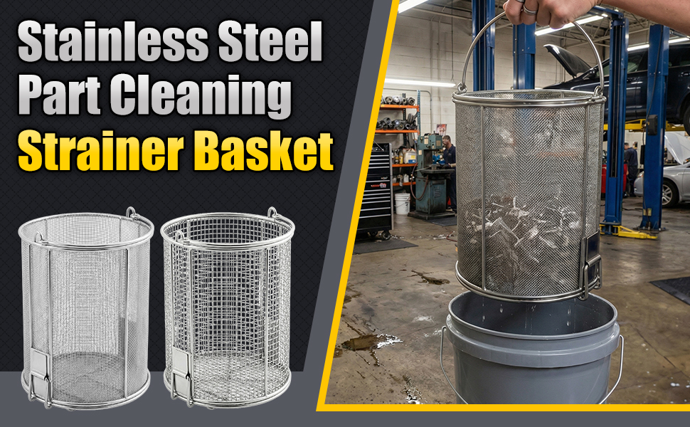 Precision 1/32" High-Density Mesh:Features an optimal 1/32-inch mesh size for efficient cleaning and filtration performance. Effectively captures oil stains and small parts, prevents component loss during the cleaning process, and safeguards delicate parts from damage while enabling unobstructed liquid flow. Delivers a well-balanced combination of structural strength and filtration precision