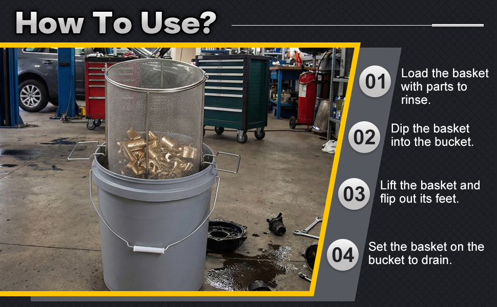 Multi-Scenario Professional Cleaning Solution:Versatile for a wide range of applications including auto repair, mechanical parts, bearings, small hardware, electronic components, and household tools. This all-in-one cleaning basket streamlines your workflow, enhances work consistency, and improves overall cleaning quality