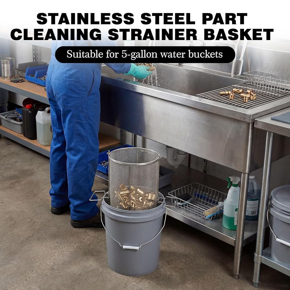 1 Pcs 1/32″ Dip N' Drain Stainless Steel Part Cleaning Strainer Basket for 5 Gallon Buckets, Swing Handle, for Mechanics, Auto Parts Washing, Garage, Shop & Home Workshop, Bucket Not Included