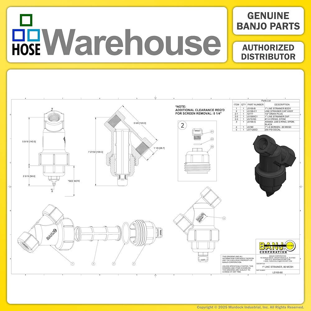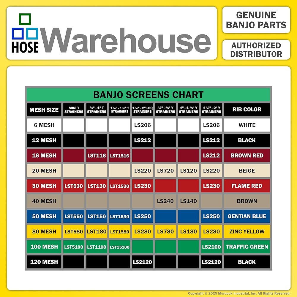 Genuine Banjo LS100-80 - 1" x 1" Y Line Strainer 80 Mesh Stainless Steel Screen with Bonus Mesh Screen Color Chart Keychain