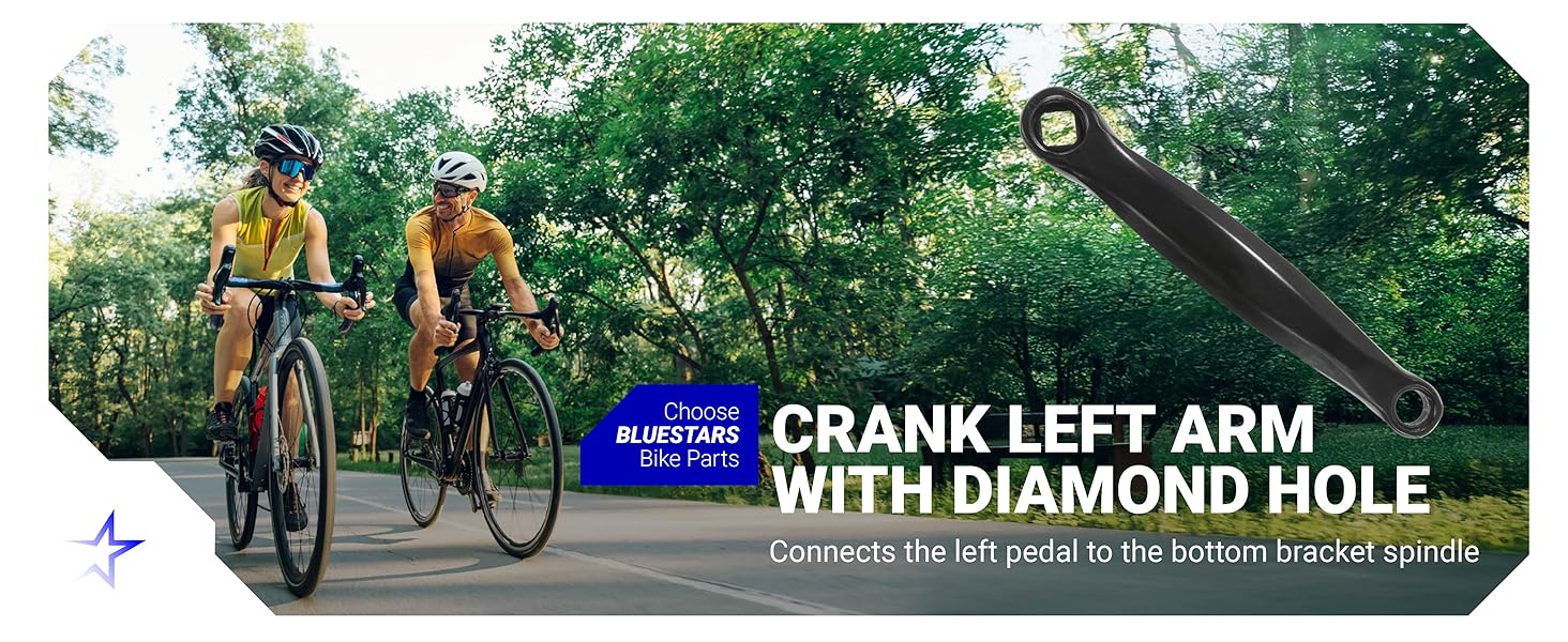 SUPERIOR QUALITY: BlueStars Bike Crank Left Arm is made of solid & strong Aluminum Alloy material, offering an excellent balance of lightweight performance and durability. Its fine polished finish resists corrosion and prevents color fading, while providing a stylish modern appearance. Precision forging ensures consistent strength, reliable pedal force transfer, and long-lasting performance for daily riding use.