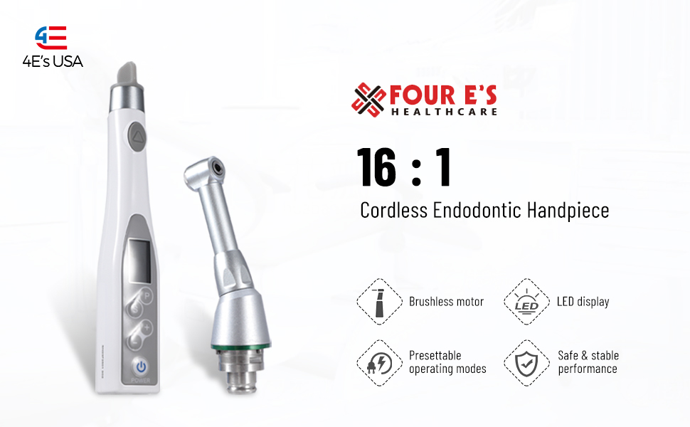 4E 4E'S USA Cordless Endodontic Handpiece with LED Display 510(K) Approved: Endo Motor 360 Degree Rotable | 16:1 Contra Angle | 9 Presettable Programs | Autoclavable, Ideal for Root Canal Treatment
