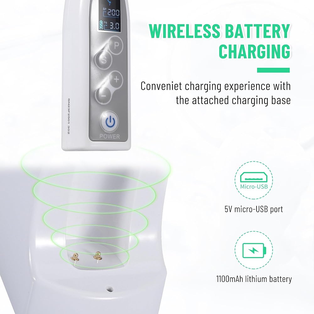 Built-in lithium battery & Auto Shut-Down Function: Equipped with large capacity battery (1000mAh), the handpiece supports longer using time; Also the device will automatically turn off itself after 5 minutes if no any operation.