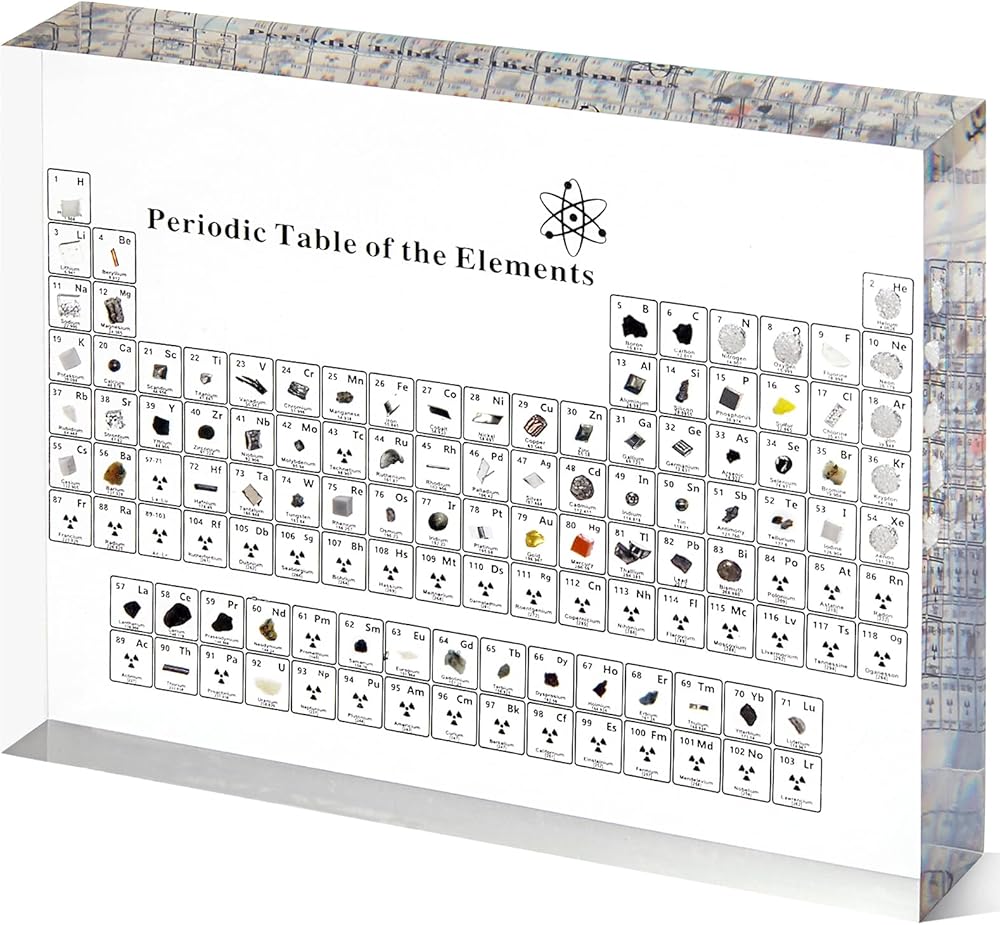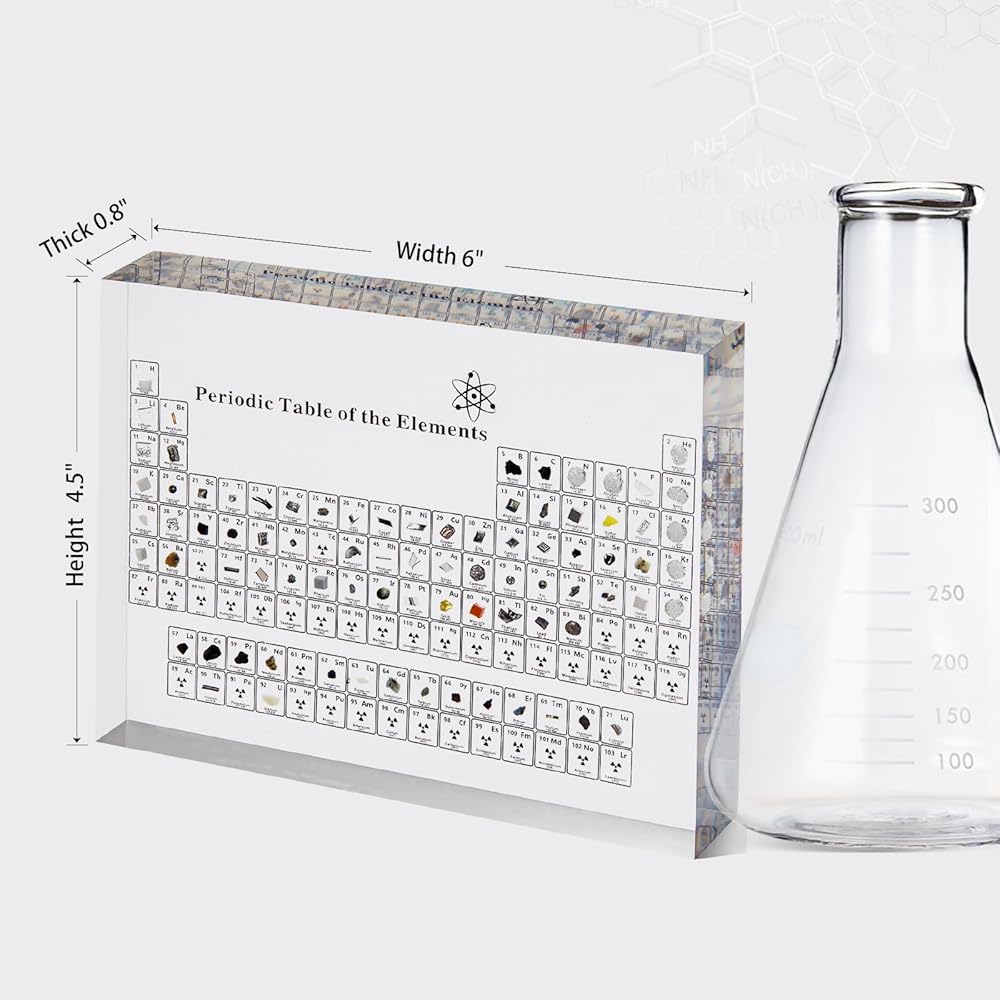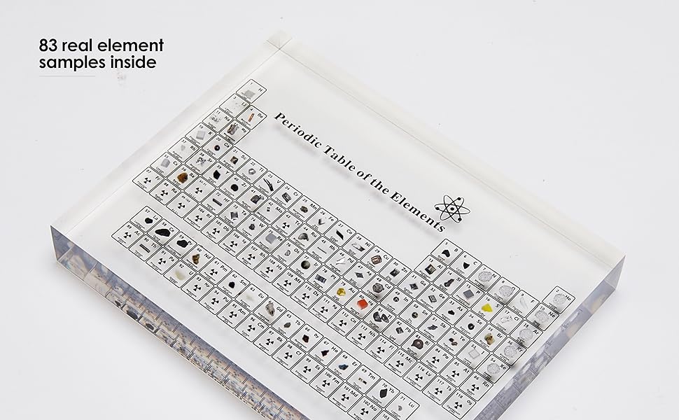 【High-quality Material】Clear periodic table with real elements is made of acrylic. Acrylic is strong, safe, non-toxic, tasteless and durable. It is crystal clear and you can clearly see the 3d element samples inside. The edges is smooth and will not hurt your hand.