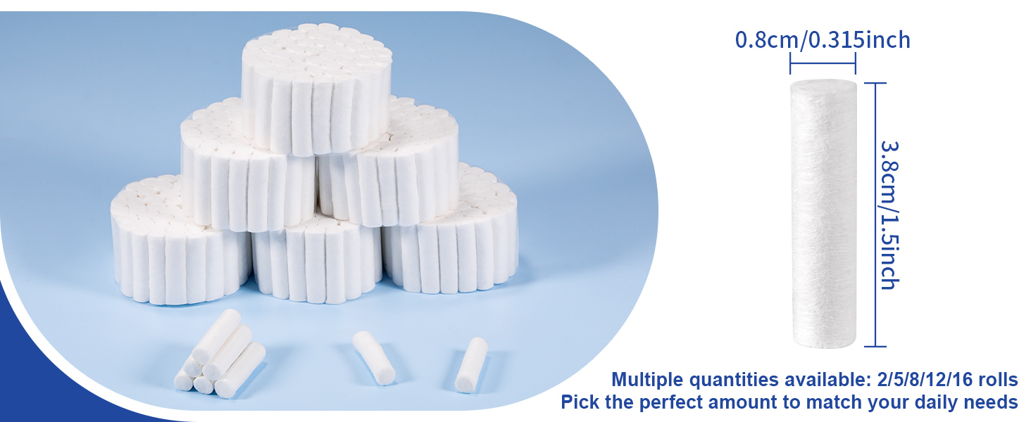 HIGH WATER ABSORPTION: Dental cotton rolls provide superior water absorption, ensuring a clean, dry environment for oral care and daily use with reliable performance
