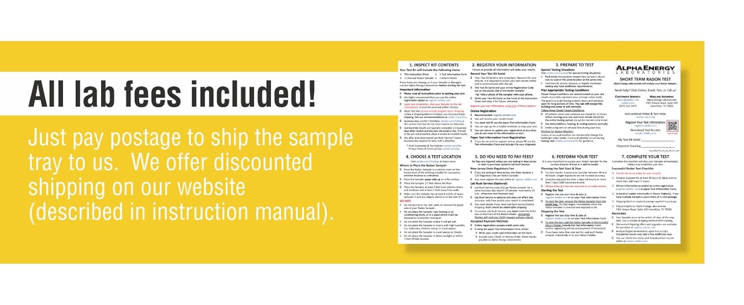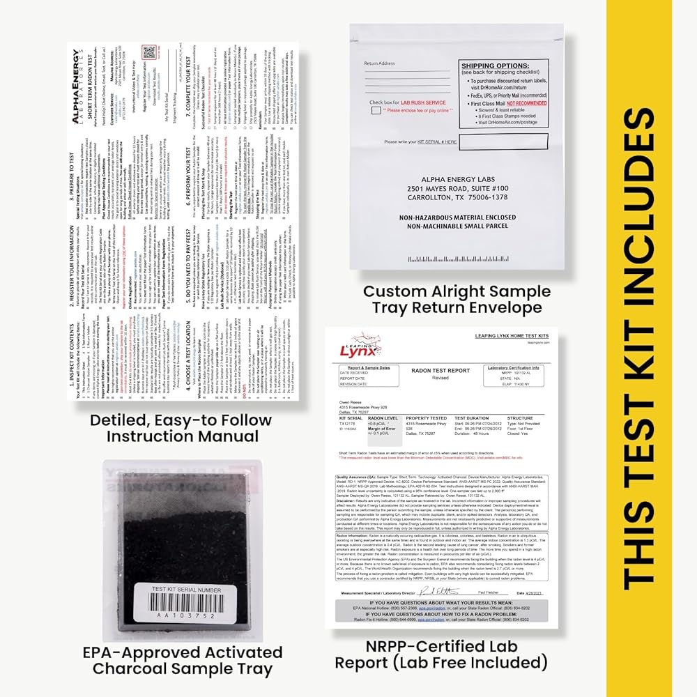 ✅ Lab Analysis Included – No hidden fees. Each kit includes one radon collection device, detailed instructions, discounted return shipping available, and a full professional lab report.