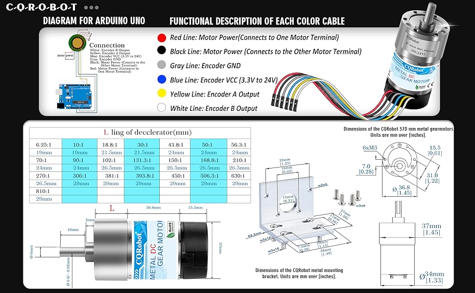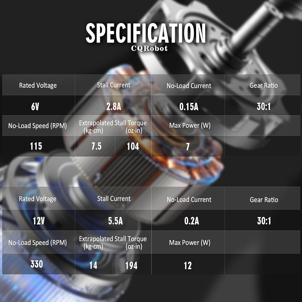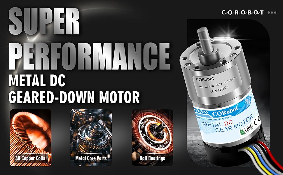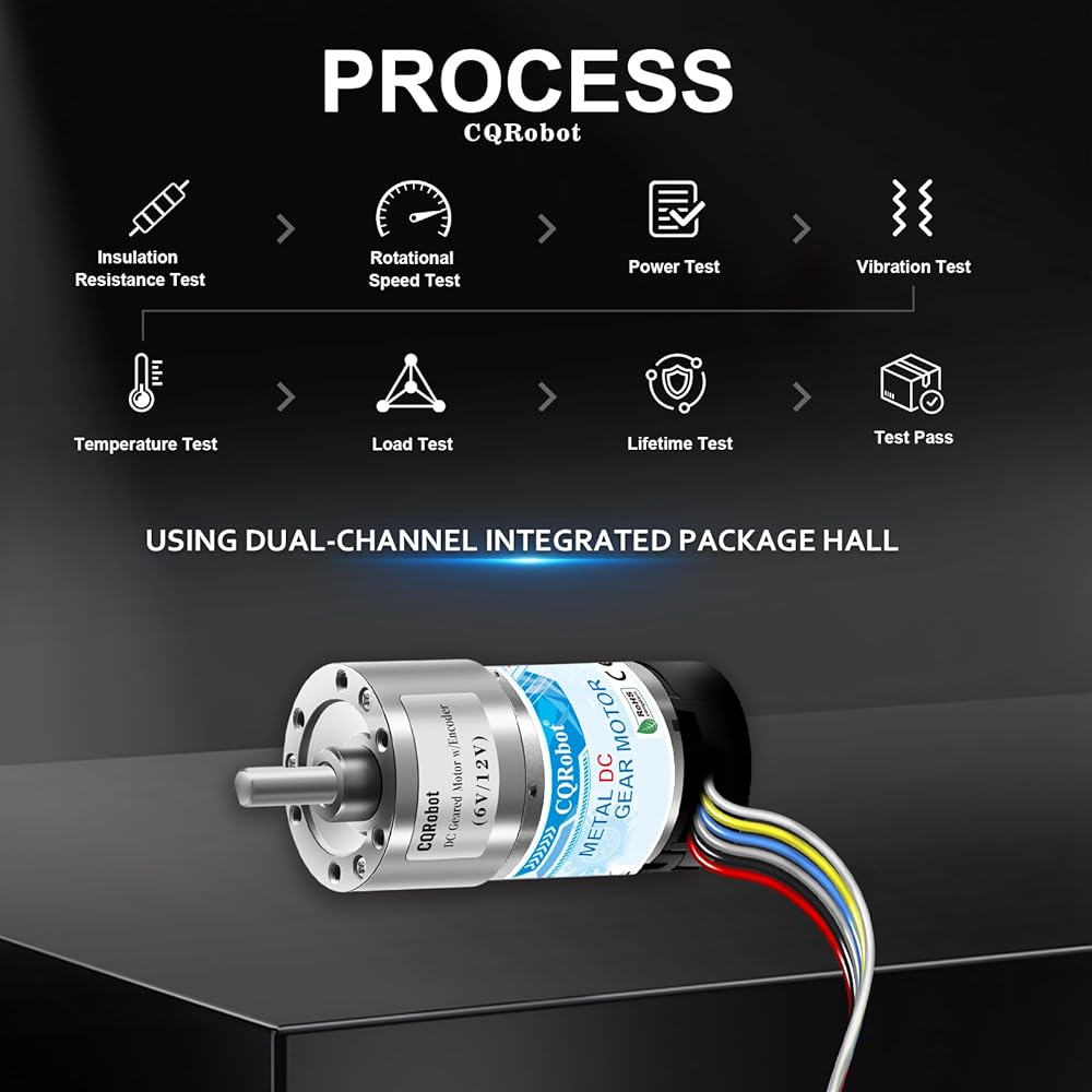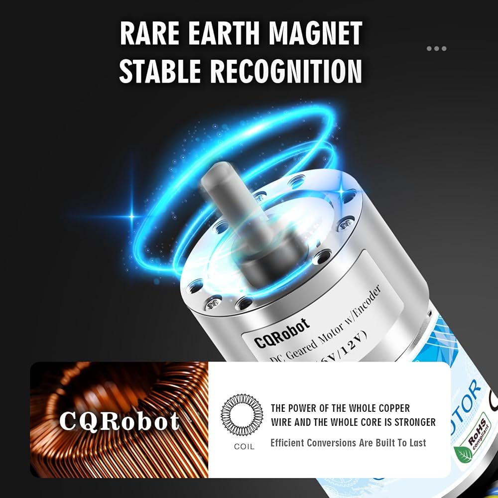 CQRobot 30:1 Metal DC Geared-Down Motor 37Dx67.5L mm 6V/12V, with 64 CPR Encoder and Bracket. 6V-7W-115RPM-7.5 kg.cm(104 oz.in), 12V-12W-330RPM-14 kg.cm(194 oz.in), D-Shaped Output Shaft 16mm.