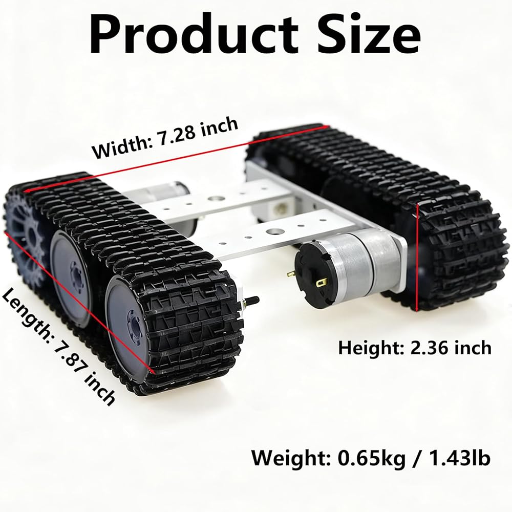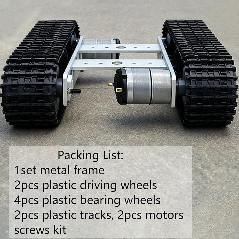 【PACKING LIST】You will get 1 set metal frame, 2pcs plastic driving wheels, 2pcs plastic bearing wheels, 2pcs plastic tracks and screw kit. The intelligent robot tracked chassis kit is a great product for DIY and science educational kits, ideal for robot enthusiasts, car enthusiasts, DIY makers and more. Through this robot chassis learning kit, you can learn the structure and components of robots; You can also learn code programs such as Arduino, Python, RoS, and many other languages.