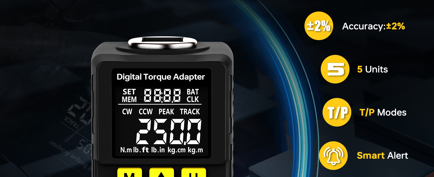 Versatile Compatibility & Universal Fit: Its 1/2" drive head fits almost all tools (ratchet wrench,extension bars and so on.This digital torque adapter 1/2" is also equipped with 1/4"and 3/8" adapters to compatible with all sizes of torque wrenches. A mechanic's trustworthy torque partner