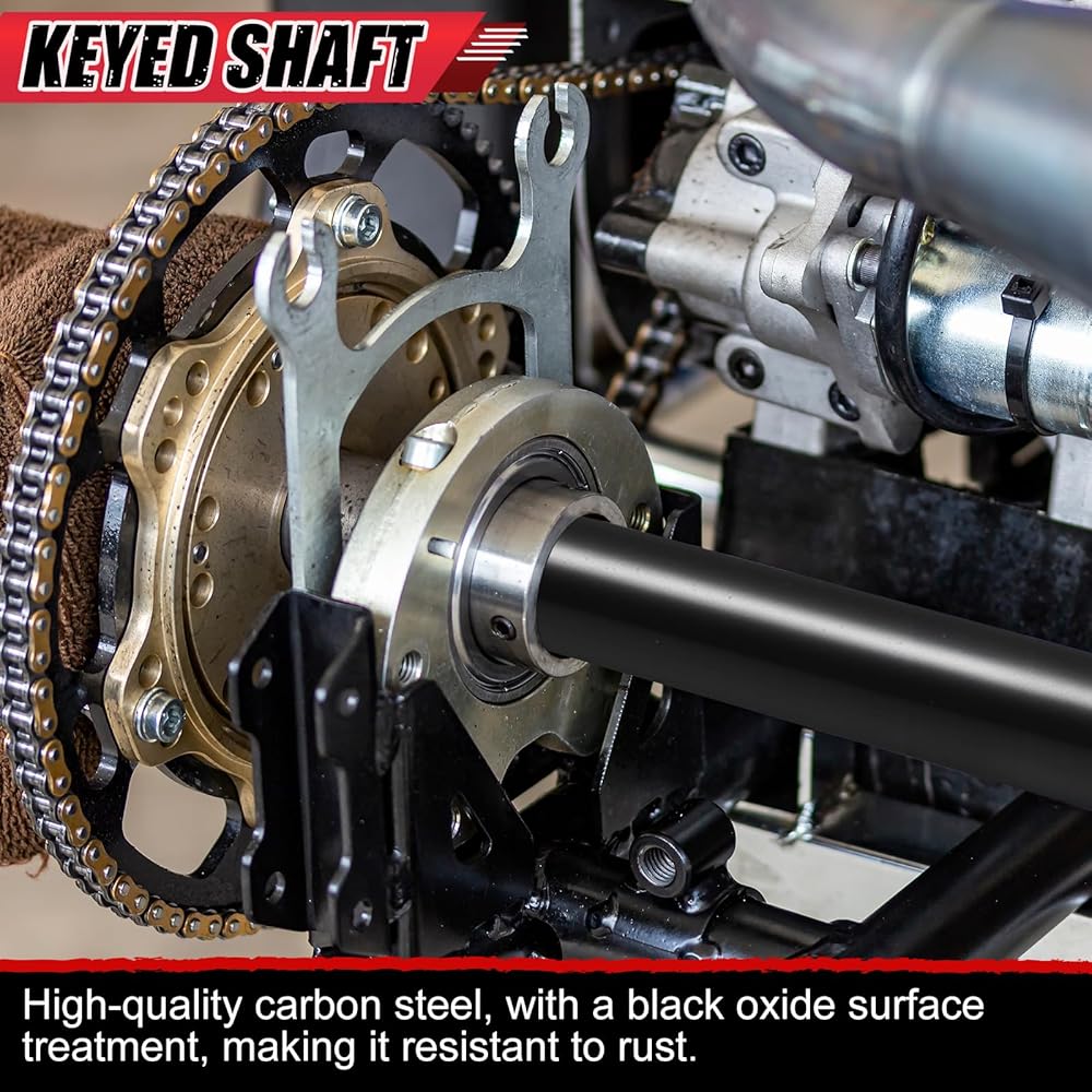 Enhanced Performance: pre keyed shafts are a convenient alternative to machined shafts; By using go kart axle with mechanical keys (not included), you can efficiently transmit torque to gears, sprockets, and other power transmission components, helps prevent slippage between the shaft and rotating mechanical parts, ensuring smooth operation