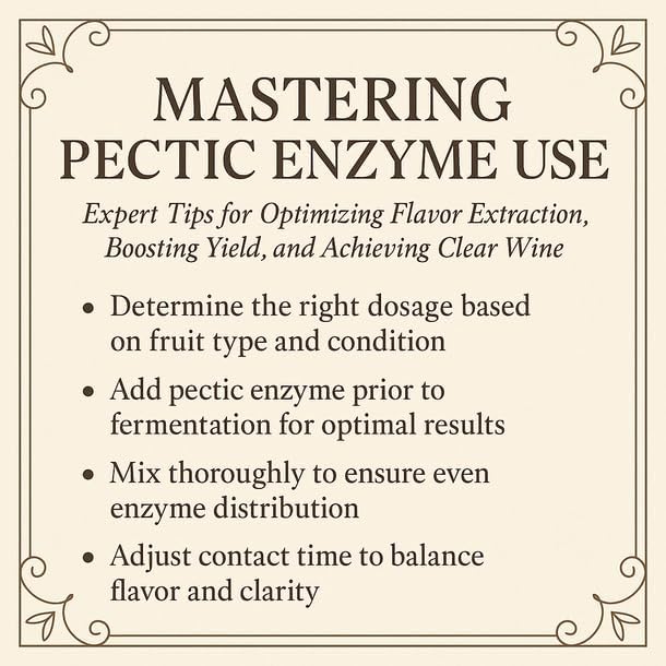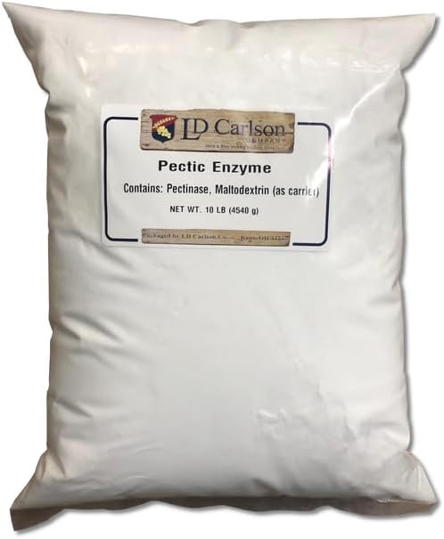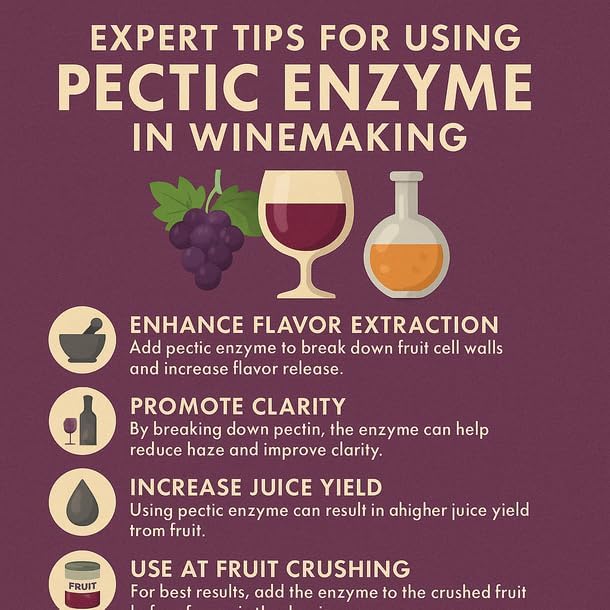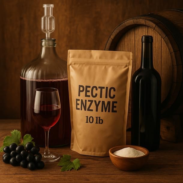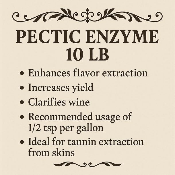Recommended in all fruit wines and red wines where added extraction of tannin from the skins is favored. By breaking down the pectin found in fruits, you improve extraction of flavors and increase overall yield. Pectic enzyme also removes the effects of pectin's chill haze leaving wine remarkably clear.