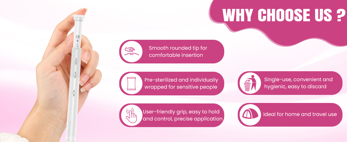 INDIVIDUALLY PACKAGED:Each vaginal applicator is individually packaged for clean, hygienic, easy use and disposal. Small and easy to carry, suitable for home and travel use