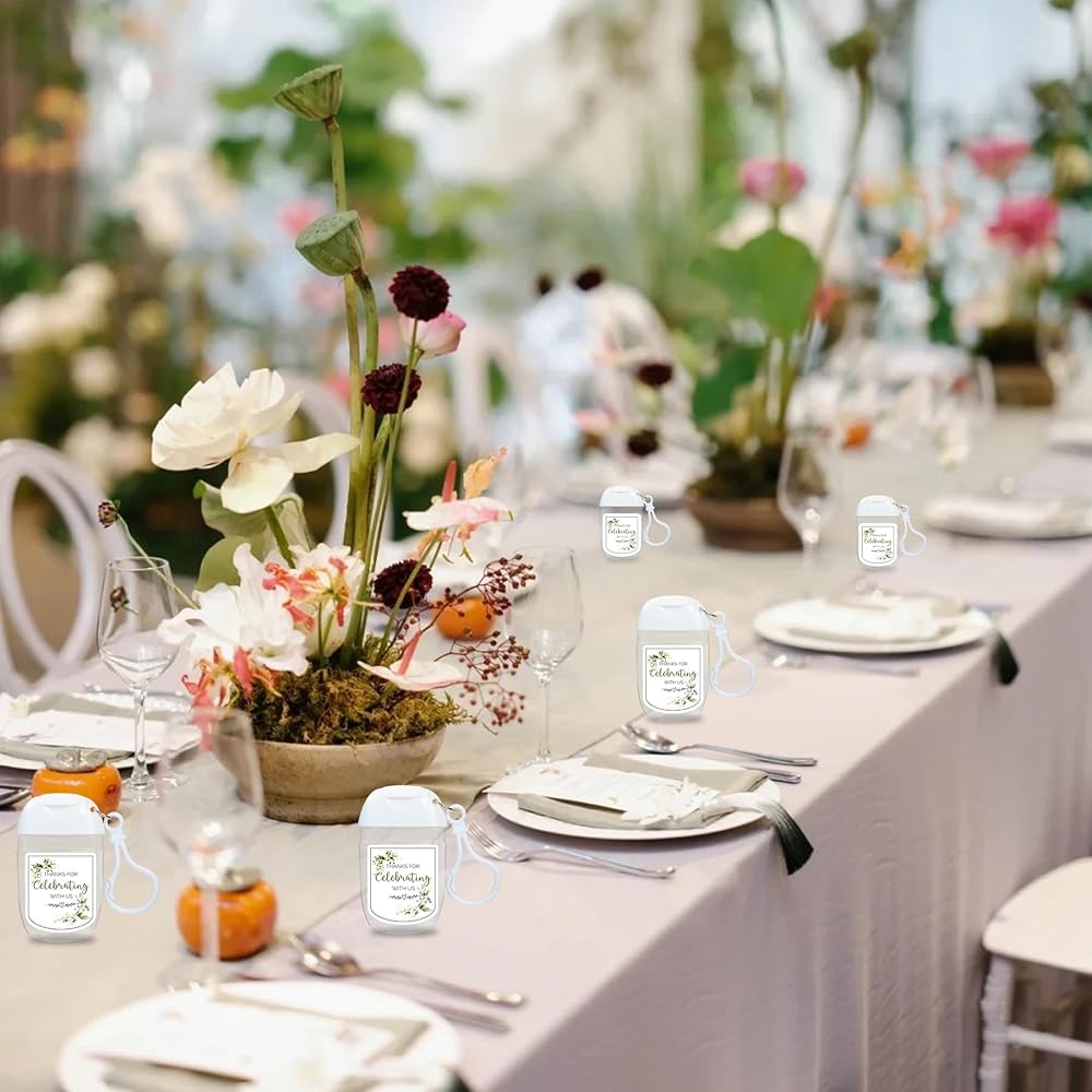 AMPLE QUANTITY FOR YOUR SPECIAL EVENT - Our set includes 50 high-quality empty hand sanitizer bottles and 50 thank you labels, ensuring you have enough to cater to all your wedding guests. This wedding favor package offers the perfect solution to add a personal touch to your special day. With this wedding favors for guests set, you can give a thoughtful and practical gift that will remind everyone of your big day. Please note: hand sanitizer is not included, allowing you to fill the bottles with your preferred scents or colors to match your wedding theme.