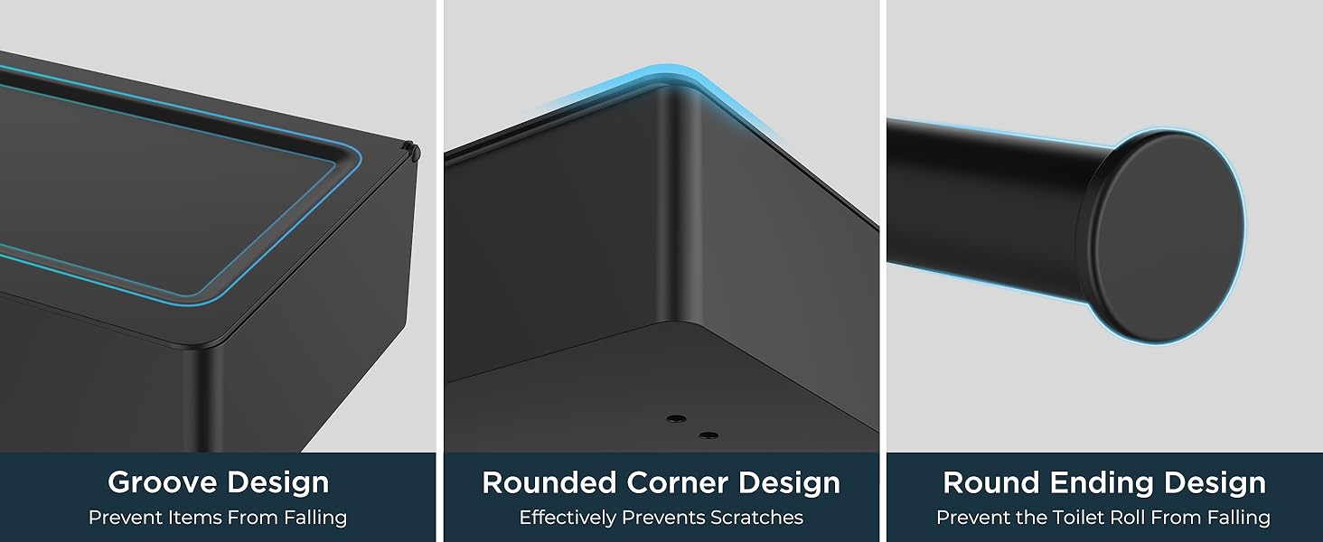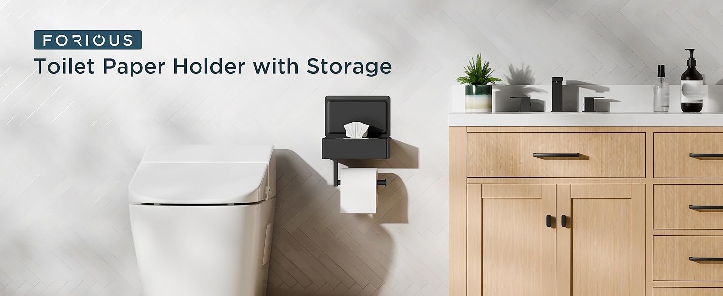 Space-Saving 2-in-1 Design: Efficiently dispenses toilet paper while offering a spacious shelf to securely hold smartphones, tissues, spare rolls, sanitary napkins, tampons, or other small essentials. Ideal for any bathroom—master suite, guest room, or kids' space
